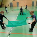 Aujourd’hui chez nos petits: chasse aux bonbons, peinture avec des glaçons de gouache (oui, oui c’est possible !) et hockey.